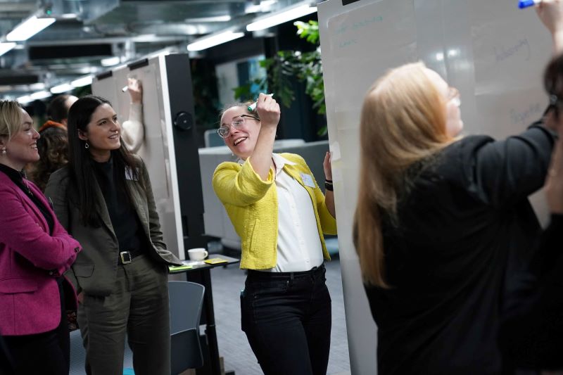 A woman making an offshore wind turbine blade at Siemens Gamesa Hull blade factory